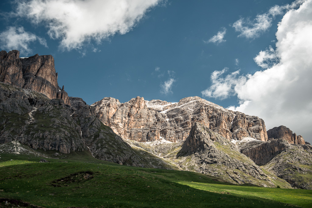 Weiter ging es Richtung Süden über den Passo Tre Croci, der im Norden den Misurinasee mit Cortina d‘Ampezzo im Westen verbindet. Der nächste Pass ist der Falzarego Pass. Wenn man nun am Falzarego Pass angekommen ist und weiter in Richtung Westen möchte, gibt es zwei Routen. Die südlich Route führt über das Pordoi und Sella Joch, die nördliche Route über den Grödner Pass. Wir entschieden uns für die südliche Route. Sehr beliebt ist auch die so genannte „Sella Ronda“, bei der man das Sella Massiv auf den gerade genannten Straßen und Pässen umrundet. Unser nächstes Ziel war die Seiser Alm und so führte unser Weg durch das Gröbnertal vorbei an St-Ulrich und Katelruth. Die Seiser Alm ist mit ihren rund 56km² die größte Hochalm von Europa. Bekannt ist der Blick Richtung Osten auf die Langkofelgruppe, besonders spektakulär ist dieser Blick zum Sonnenaufgang. Der Zugang zur Seiser Alm ist mit Bussen und der Gondel möglich. Mit dem Auto darf man nur in den frühen Morgenstunden und in den späten Abendstunden verkehren. Eine Anreise zum gebuchten Hotel ist mit einer speziellen Genehmigung natürlich immer möglich. Wer nicht ganz so gerne wandert, ist mit dem Fahrrad oder E-Bike bestens gerüstet, um die Hochebene zu erkunden. Letztes Ziel unserer Reise war dann der Karersee, welchen man von Seis aus am besten über den Nigerpass erreicht.